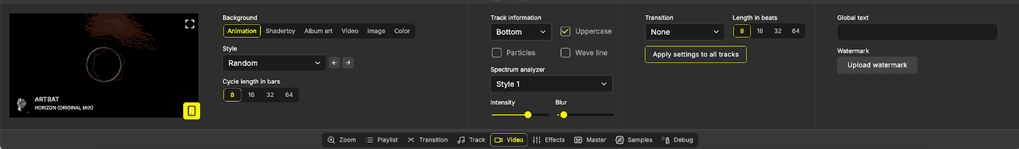 DJ.Studio’s Video Creator can render audio-reactive 4K music videos of your mixes with track IDs, spectrum, text overlays, album art, and more - ideal for YouTube and social. It also generates YouTube-friendly tracklists.