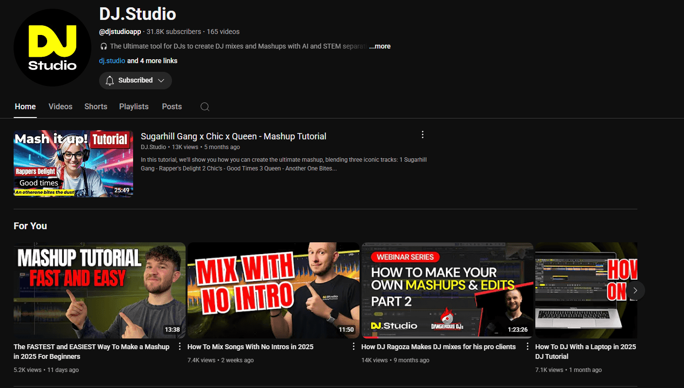 What it is: A vibrant and growing public channel on YouTube managed by the DJ.Studio team, featuring a huge range of content from short-form tutorials to longer, in-depth showcases.