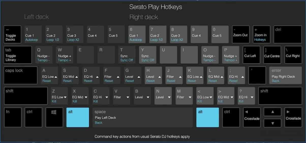 I won't explain the specific shortcuts here, as you should easily be able to find them for your chosen DJ software.