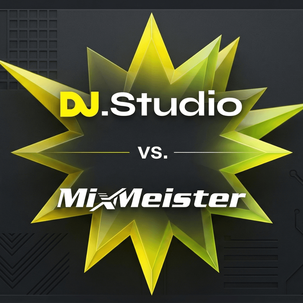 A detailed comparison of DJ.Studio and rekordbox, explaining which DJ software is best for live performance, studio production, and radio mixes.