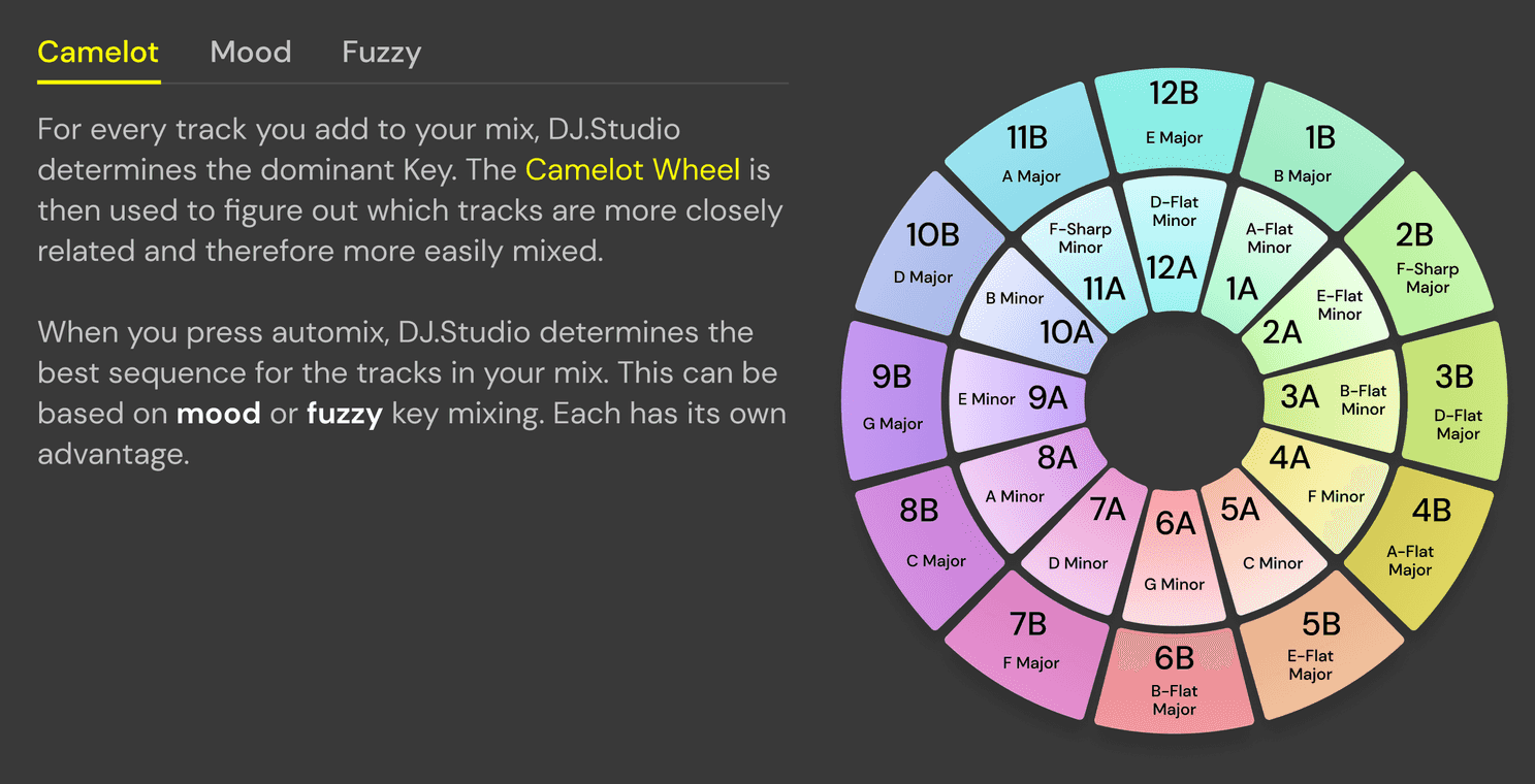 This guide explains the details and nuances of fuzzy keymixing and shows how to use DJ.Studio's AI automixer to automatically order your setlists using the fuzzy technique.