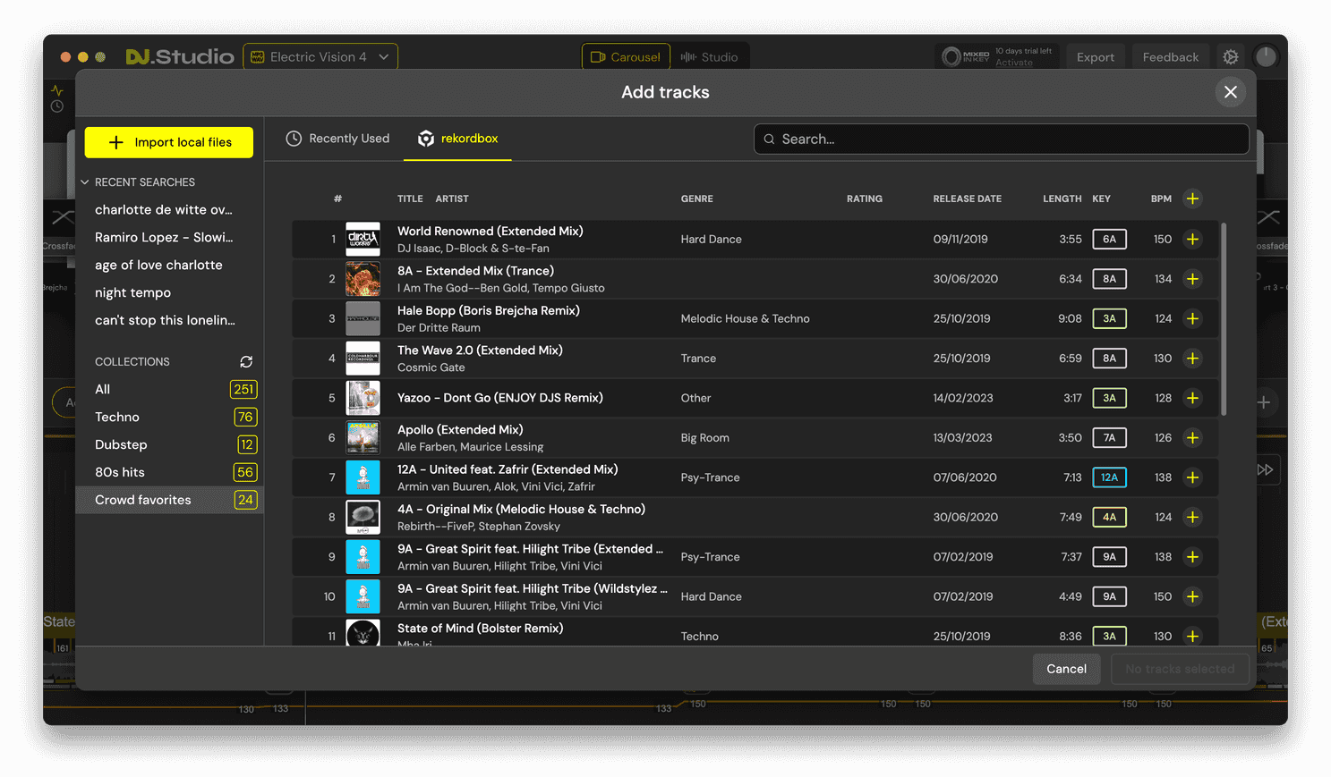 Then you can go about making notes of the BPM, key, and mood of each of these tracks to prepare your selection of music to arrange an order. When you use DJ.Studio you don't need to spend any time on this, as DJ.Studio does this automatically for you.