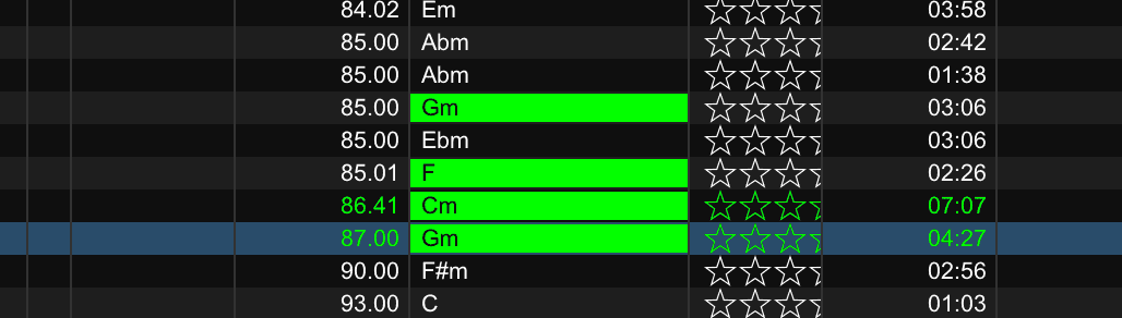 You now get some clear indication of which tracks in your library are compatible with the currently loaded tracks. This makes harmonic mixing much easier, as you can instantly see whether a track has a compatible key or not.